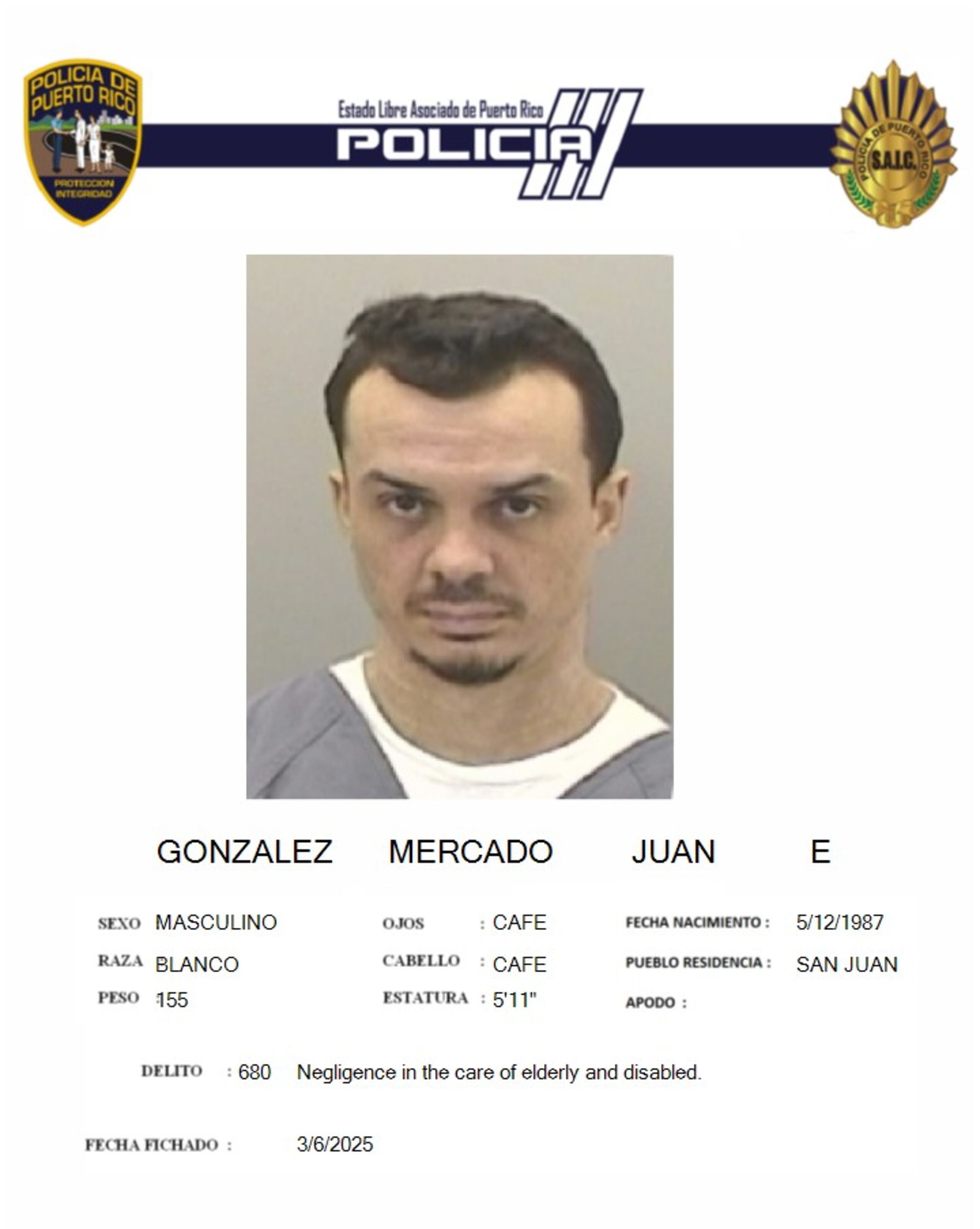 Según la investigación de la Policía, el 20 de junio de 2024, a eso de la 1:37 de la tarde, en el condominio Floral Plaza, en Hato Rey, el imputado se comportó de manera negligente con su madre de 69 años, a quien no alimentó ni cuidó.