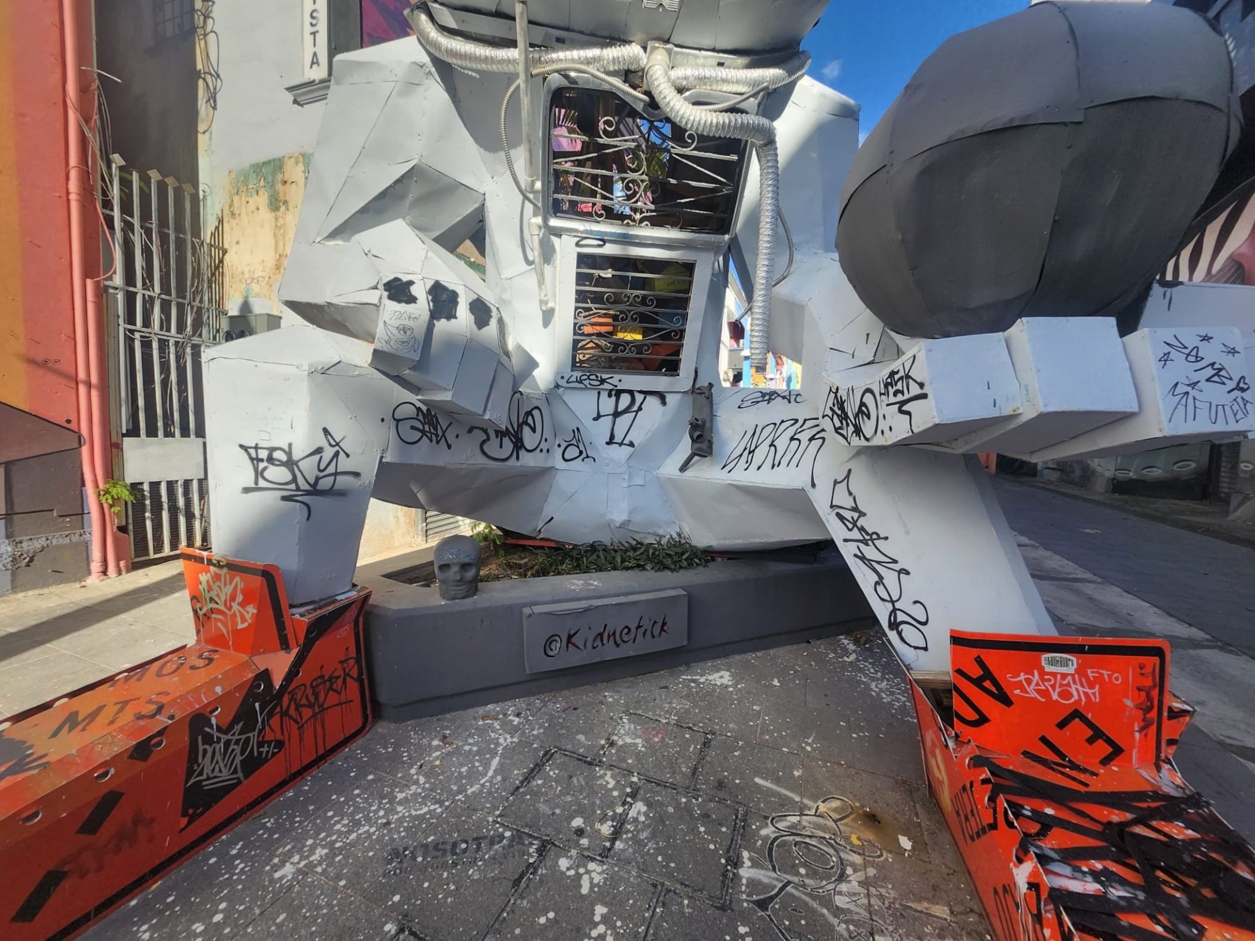 De acuerdo con la investigación, el individuo identificado como Alejandro L. Torres Díaz pintó la estructura con múltiples grafitis, ocasionando daños estimados en más de $2,000. La escultura es propiedad del Municipio de San Juan y forma parte del entorno urbano del Paseo de Diego, un área de alto valor histórico y comunitario.